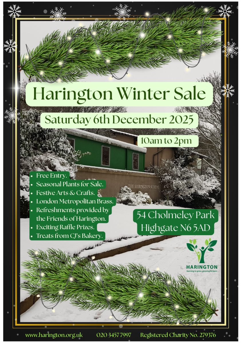 Get into the festive spirit at our annual Winter Sale, where you can purchase a beautiful selection of seasonal plants and gifts for friends and family. Enjoy live music from the London Metropolitan Brass Band and refreshments provided by the Friends of Harington. It’s the perfect way to start the season and support Harington’s work.